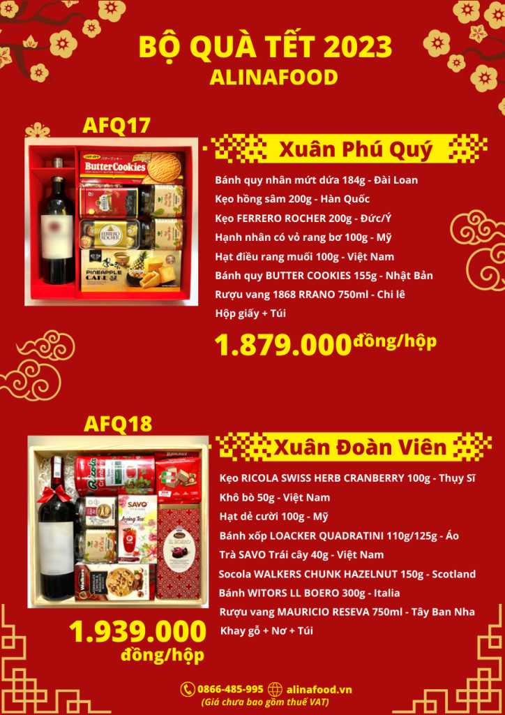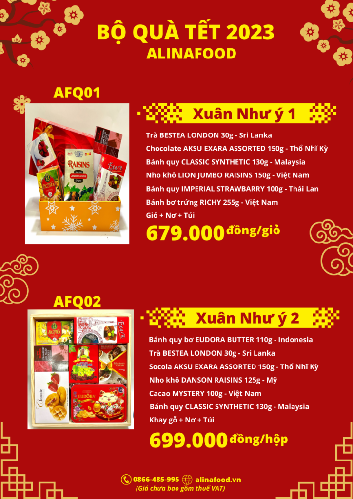 AlinaFood hân hạnh đồng hành cùng Quý khách với Bộ Quà tặng Tết 2023 đầy ý nghĩa, sang trọng, chất lượng như ý !