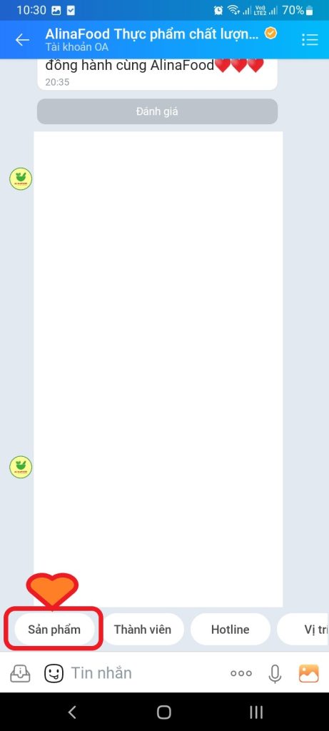 Bước 1: Đặt hàng trên AlinaFood ZaloOA (hoàn thành không quá 01 phút):