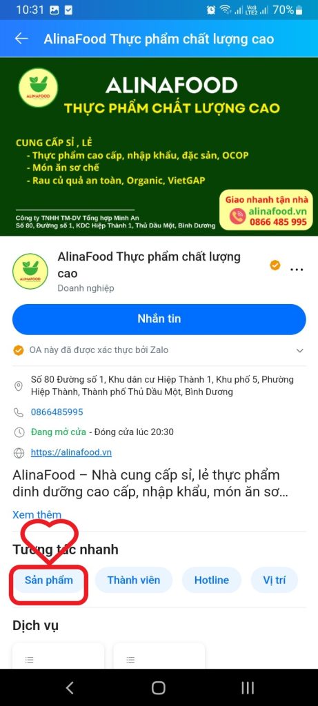 Hướng dẫn mua hàng trên AlinaFood ZaloOA - Nhanh chóng - Tiện lợi