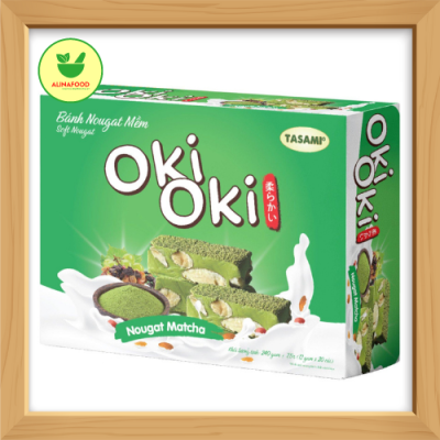 Bánh Nougat (kẹo hạnh phúc) matcha OKI OKI 240g